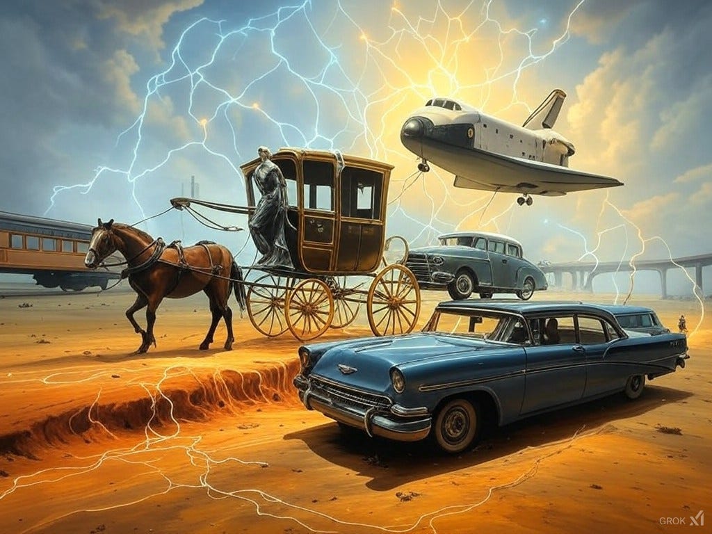 Imagine if the complexity of understanding language by Large Language Models (LLMs) like Grok could be likened to the evolution of transportation from the 19th century to the modern era. In this analogy, the hidden state of an LLM is akin to our vehicles, evolving from simple horse-drawn carriages to the sophisticated Space Shuttle, all while adhering to a consistent "width" - in this case, the dimensionality of vectors.